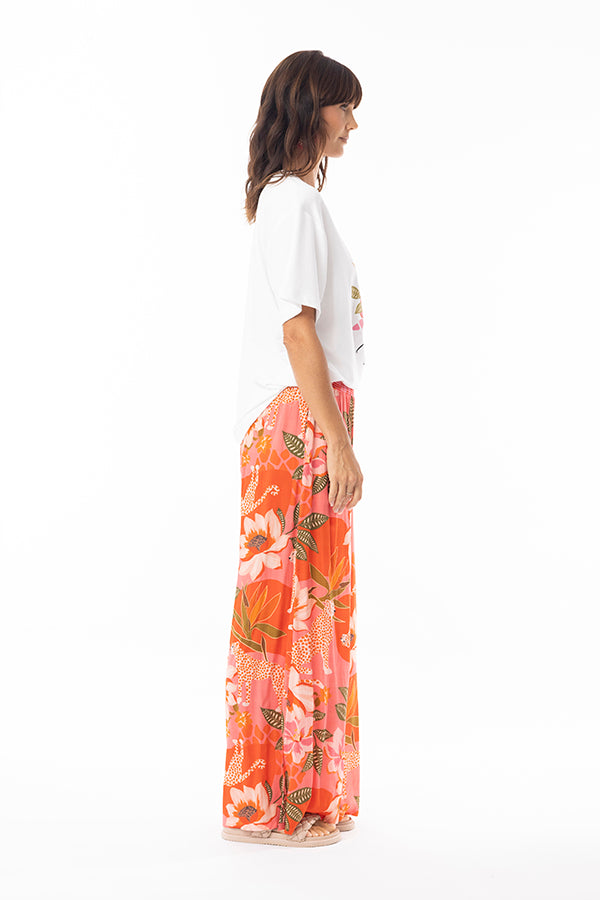 Bask in the romance of the enchanting Aria Pant. Lightweight and comfortable, these pants offer a flowing silhouette in silky rayon, making them perfect for warm sunny days. A gorgeous rose dusk print and colours make these pants the perfect addition to your summer wardrobe, blending style and ease!
