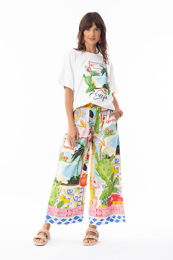 Write your escape story in the coastal Erica Pant. Lightweight and comfortable, these pants offer a flowing silhouette in silky rayon, making them perfect for warm sunny days. Its pretty mexican seaside design and colours make these pants the perfect addition to your summer wardrobe, blending style and ease!