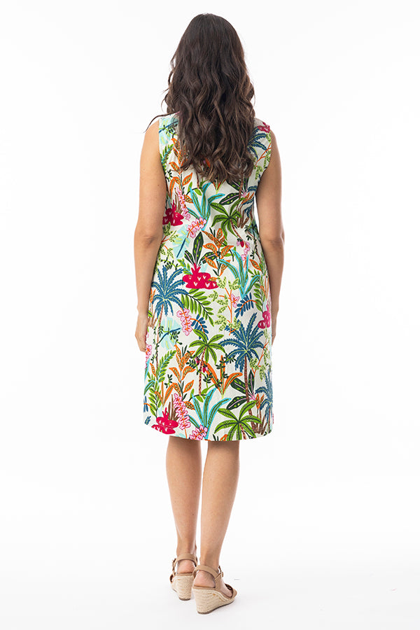 Introducing our Ovahe Sleeveless Shift Dress. Featuring a sophisticated boat neckline with a subtle slit at the centre, sleeveless design and knee-length skirt, this piece showcases beautiful prints, offering a chic and comfortable style perfect for any occasion. Add colour to your wardrobe with this stunning and sophisticated piece.