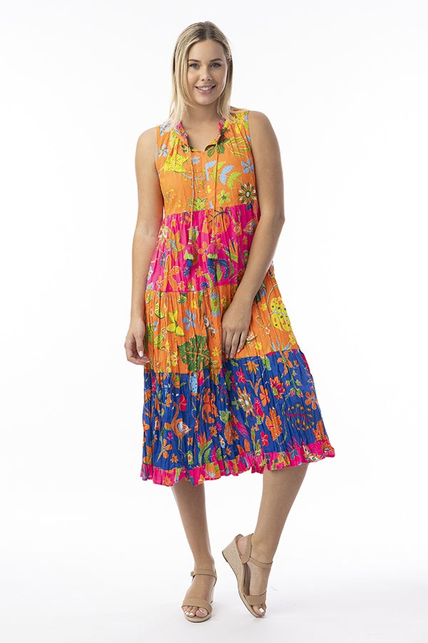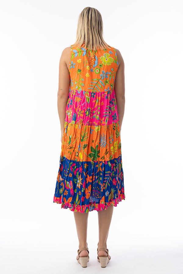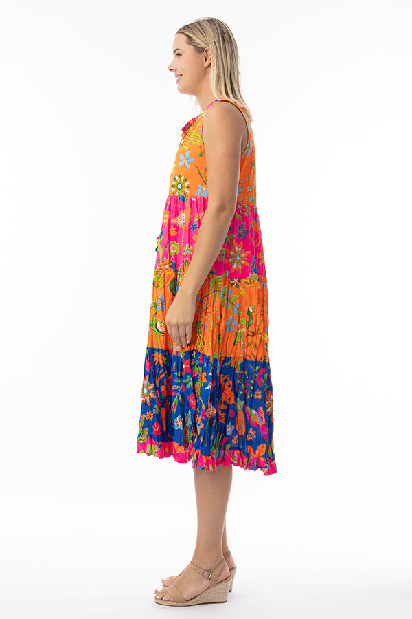 Step into the sunshine in style with the vibrant Miraflores boho dress. Perfect for beach holidays, this lightweight, colourful piece promises comfort and style featuring a relaxed silhouette, midi-length skirt, and sleeveless design. Ideal for soaking up the sun or sipping cocktails by the sea, this is your go-to for effortless elegance.
