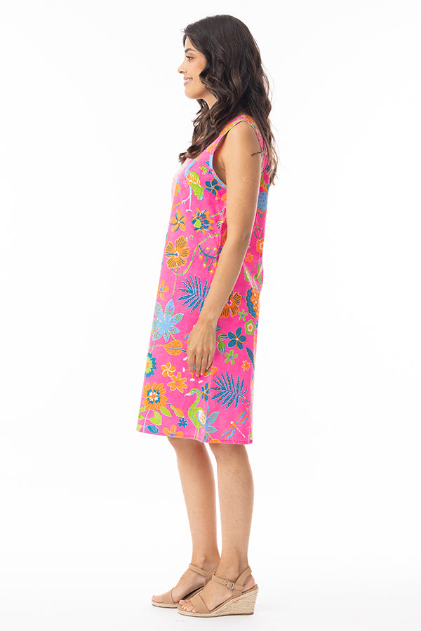 Elevate your look with the Miraflores Sleeveless Shift Dress. Featuring a sophisticated boat neckline with a subtle slit at the centre, sleeveless design and knee-length skirt, this dress offers a chic and comfortable style perfect for any occasion.