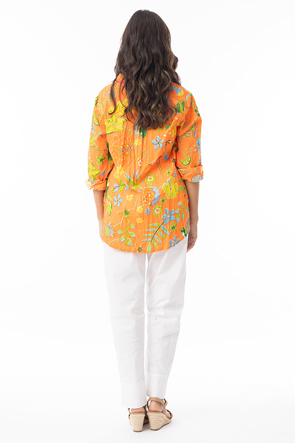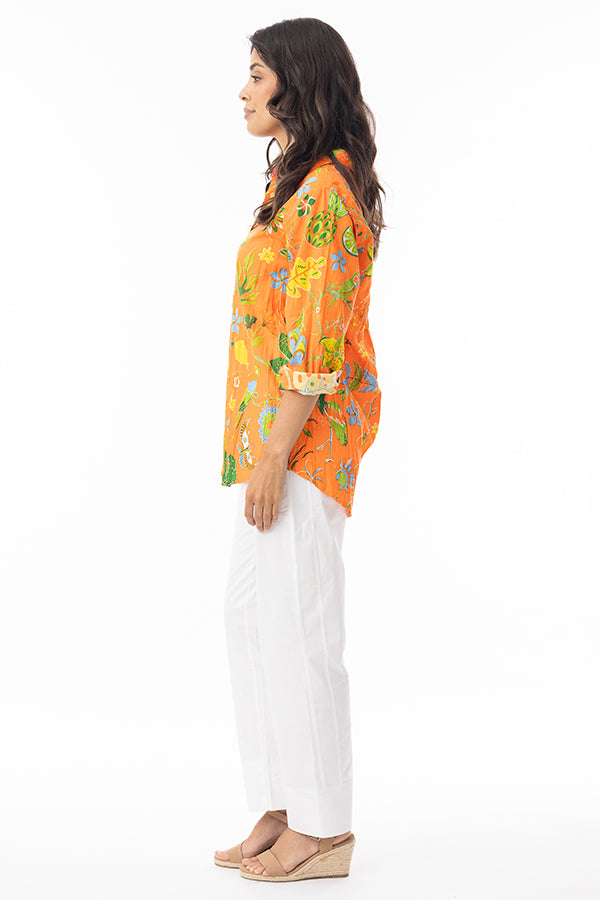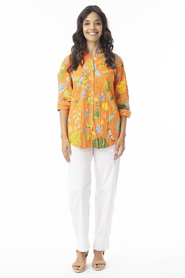 Celebrate summer in the stylish Miraflores Orange Shirt. This classic silhouette, featuring 3/4 sleeves and a crisp collar, offers a slightly relaxed fit for effortless style and comfort. Perfect for adding a pop of colour to your outfit, this shirt blends timeless elegance with vibrant hues.