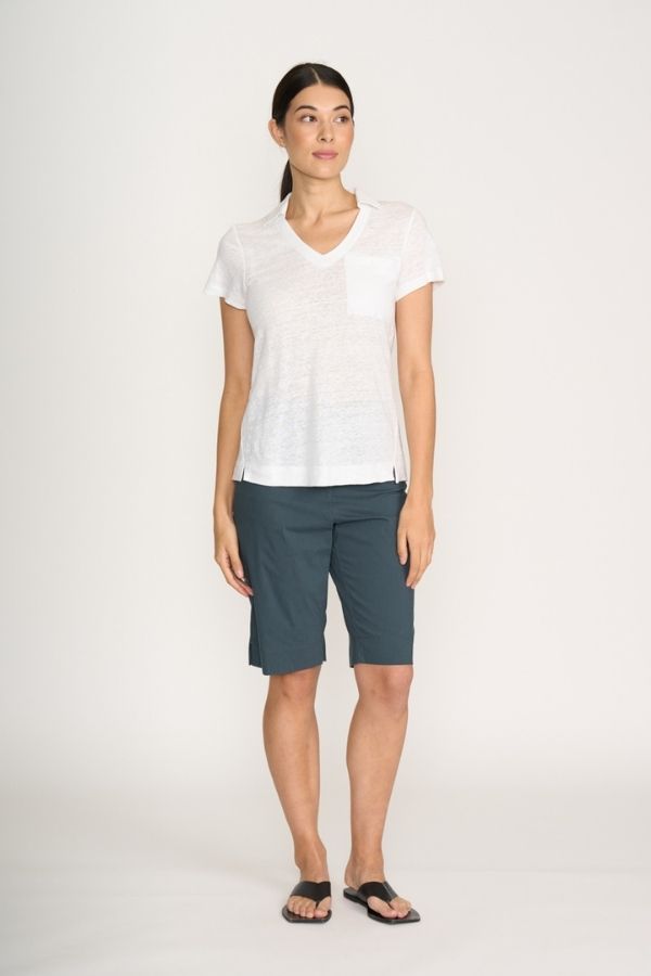 The Foil Tee Off Shorts are  the perfect combination of comfort and style. The lightweight trapeze stretch cotton mix fabric and chic styling make them perfect for a day out on the golf course, in the suitcase or a casual weekend outing. Featuring a flat band on the front above a fly zip closure, and an elasticated band on the back for ease of fit. With practical front pockets, patch rear pockets and a stylish tailored fit , these shorts are both practical and fashionable.