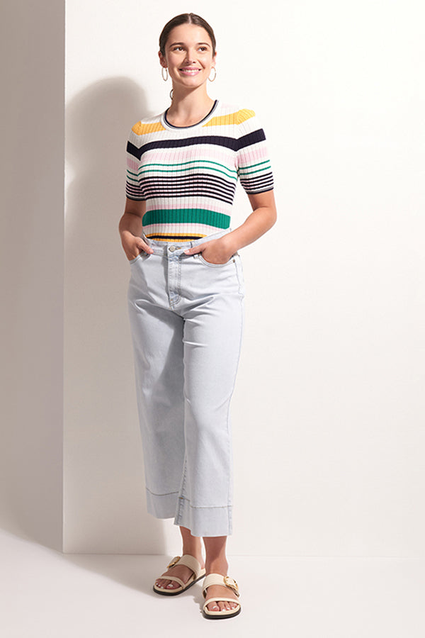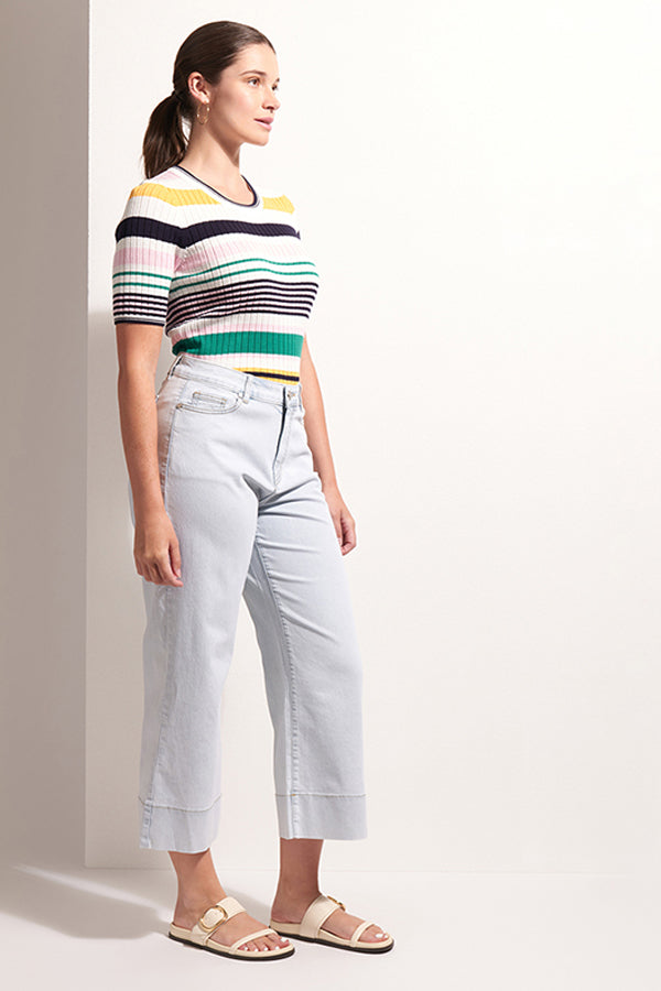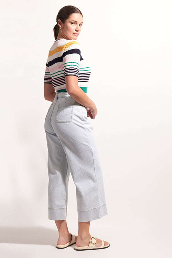 The Jean Queen Crop is made from lightweight denim for a cool comfortable  fit. With a secure zip and button closure, these cropped jeans blend functionality with a contemporary shape. Featuring a relaxed wide leg and classic five-pocket design, they bring a laid-back yet stylish vibe to your everyday wardrobe. Perfect for keeping your look fresh, fun, and effortlessly cool all day long.
