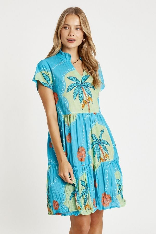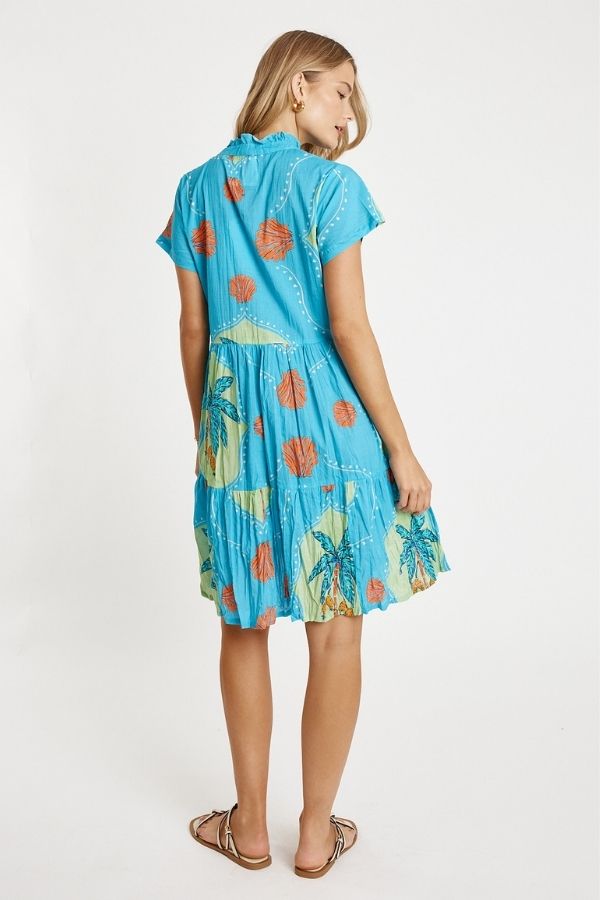 Offering easy comfort with a playful touch, the LulaLife Anaya Dress is perfect for warm, laid-back days. Made from 100% cotton, it feels soft, breathable, and effortless to wear. The V-neck with a frill-trimmed neckband adds a pretty detail, while the short sleeves keep it cool and relaxed. The tiered design with gathers creates natural movement, and the knee-length cut makes it ideal for everyday outings. Finished with practical side pockets and proudly designed in Australia, this dress delivers casual charm with a fun, feminine feel.