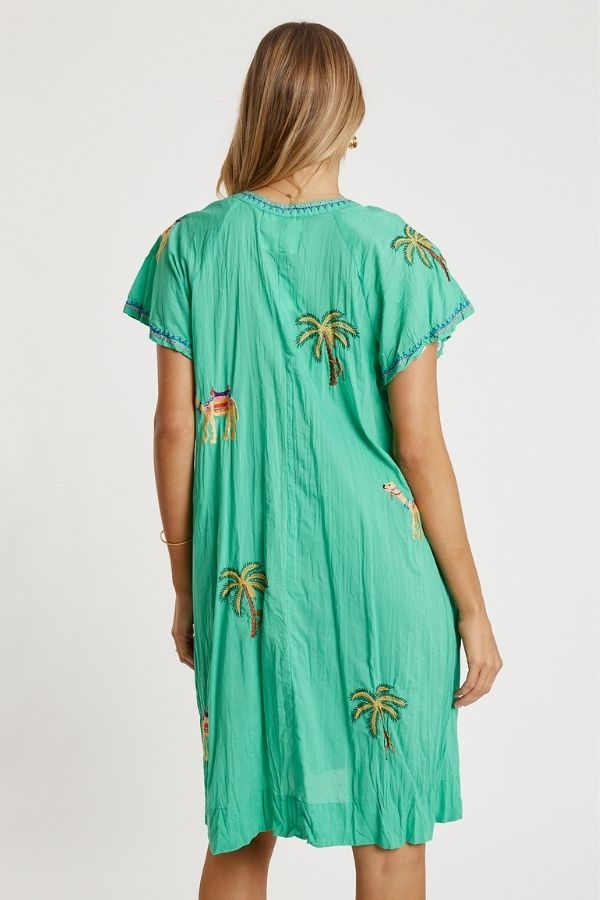 Bringing breezy comfort and beautiful detail, the LulaLife Sahara Dress is an easy everyday favourite. Crafted from 100% cotton, it’s soft, breathable, and perfect for warm-weather style. The embroidered motifs add a delicate, handcrafted touch, while the V-neck with Nauru collar keeps the look fresh and flattering. Designed in a relaxed A-line shape, it features loose raglan sleeves, handy side pockets, and a versatile knee-length cut. Proudly designed in Australia, this dress blends colour, comfort, and effortless charm for casual days out.