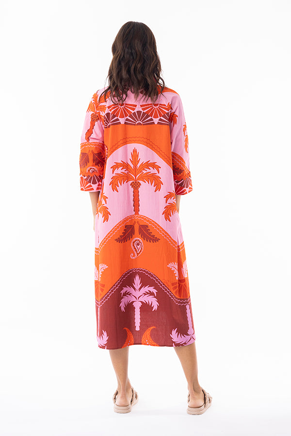 Escape into elegance with the radiant Celeste Shirt Dress. Crafted from breathable cotton, this versatile piece features a fun oasis on the Sahara print, vibrant colour, a crisp collar, full-length button placket, and practical side pockets. Perfect for any occasion, it transitions seamlessly from day to evening, ensuring you look effortlessly chic wherever you go.