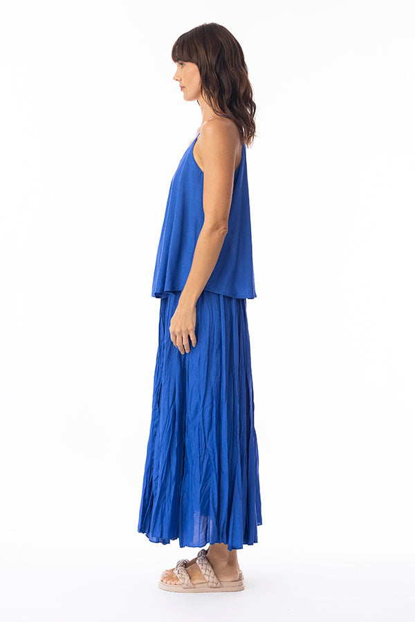 Escape into elegance with the timeless Lux Crushed Skirt, crafted from luxurious, rich rayon for a soft feel. This skirt features a delightful crushed fabric texture, a comfortable elasticized waist, elegant loose pleating, and a graceful wide hem, designed for enduring style.