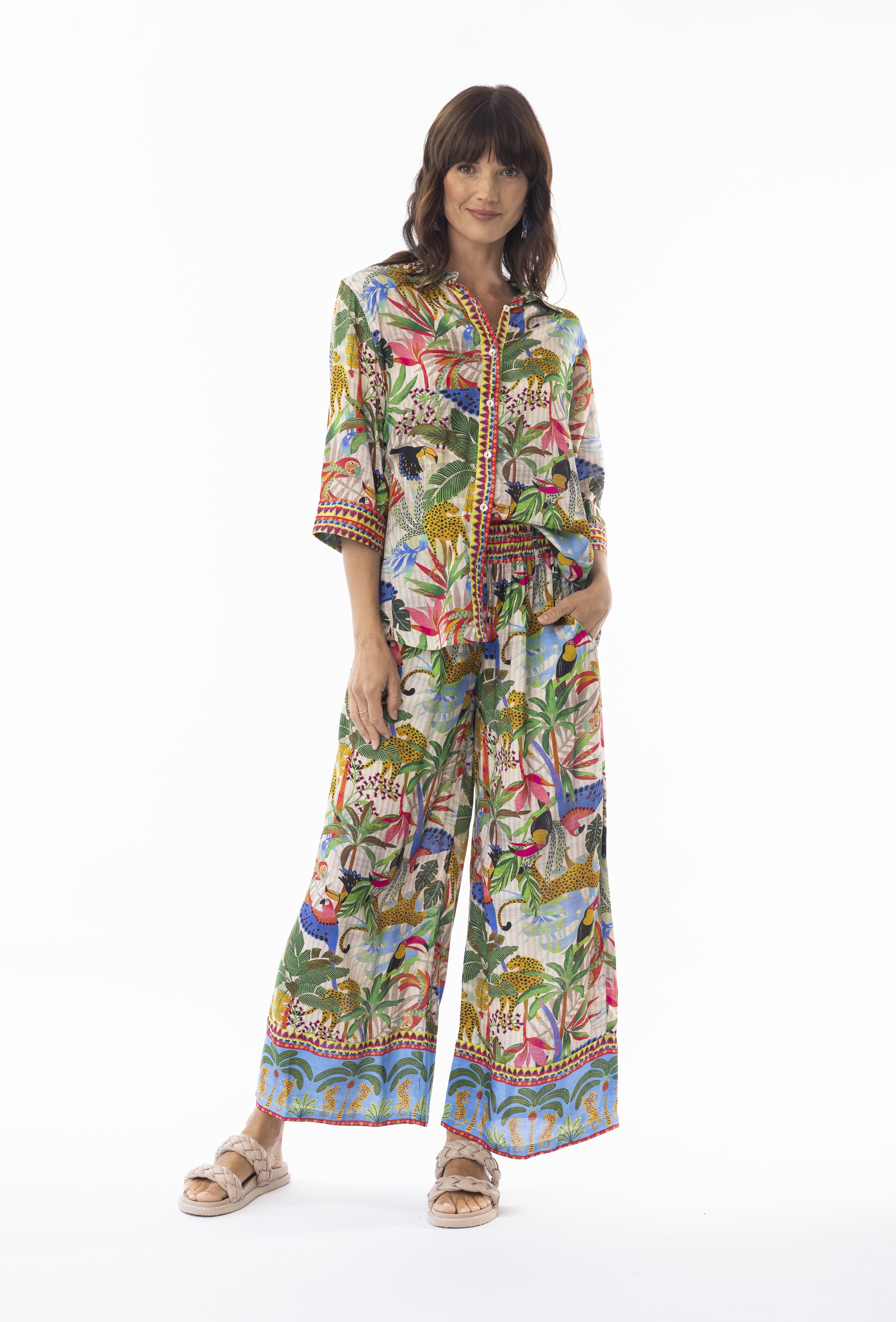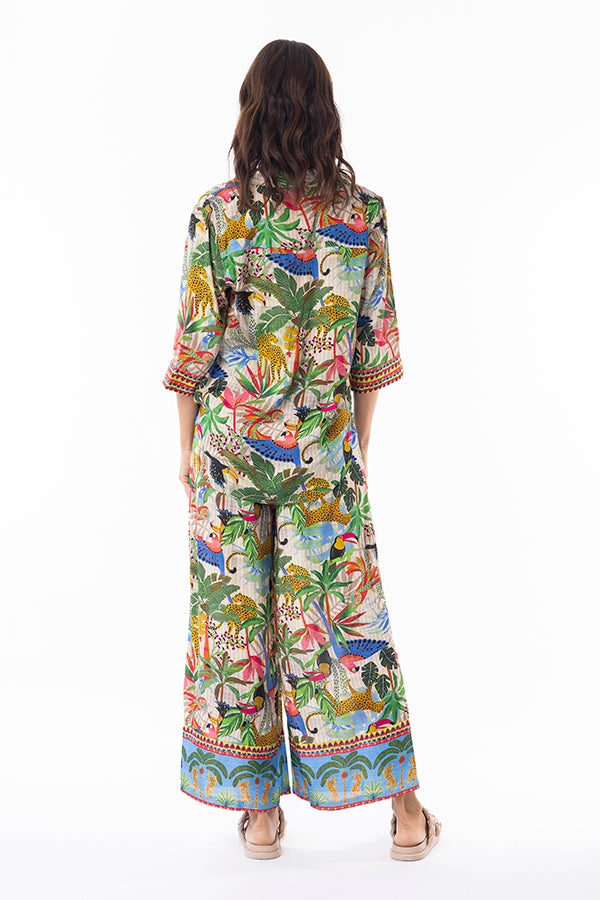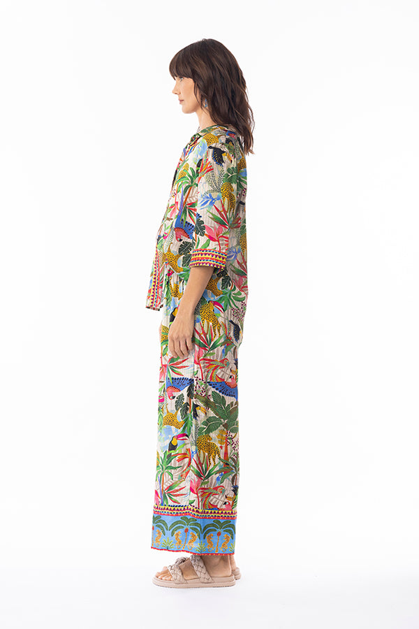 Bask in the romance of the ethereal Dani Shirt. Featuring an Amazonian flora and fauna print, this shirt ensures breathability and comfort. Its minimalist design easily pairs with any outfit, making it an essential piece for your everyday wardrobe.