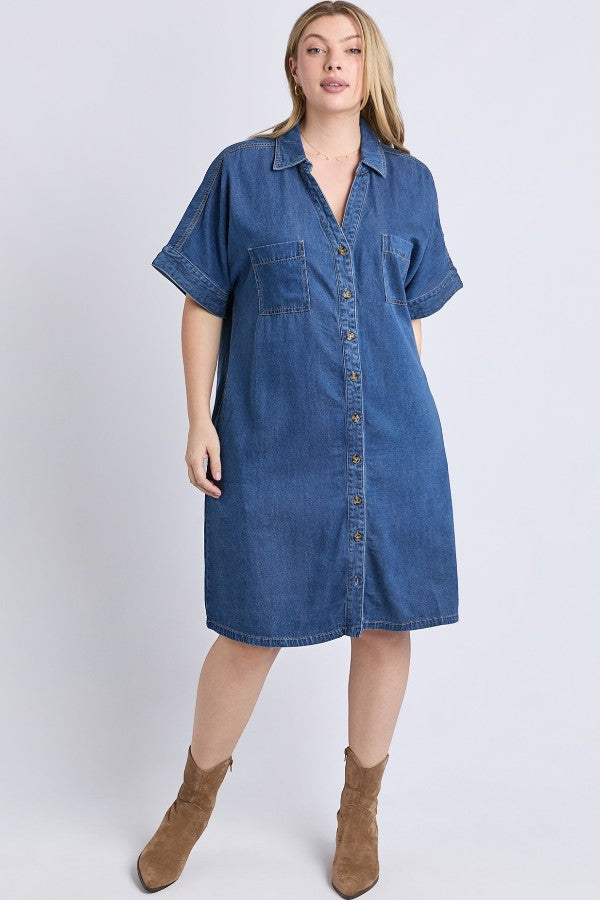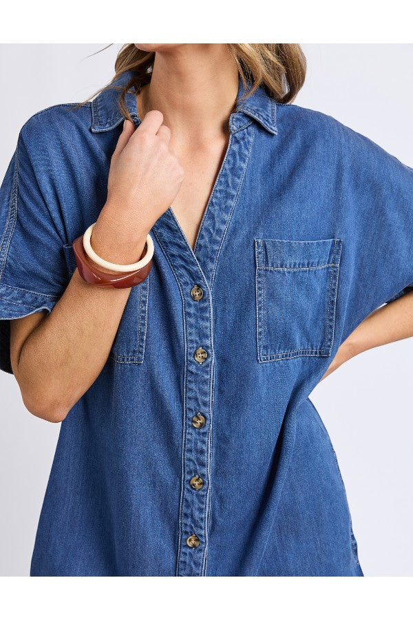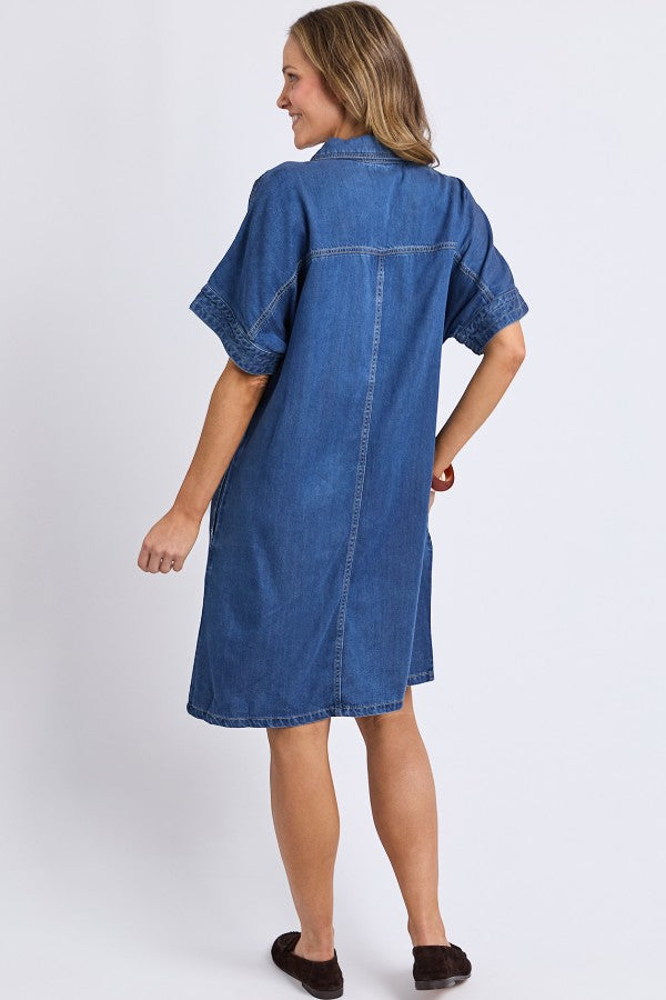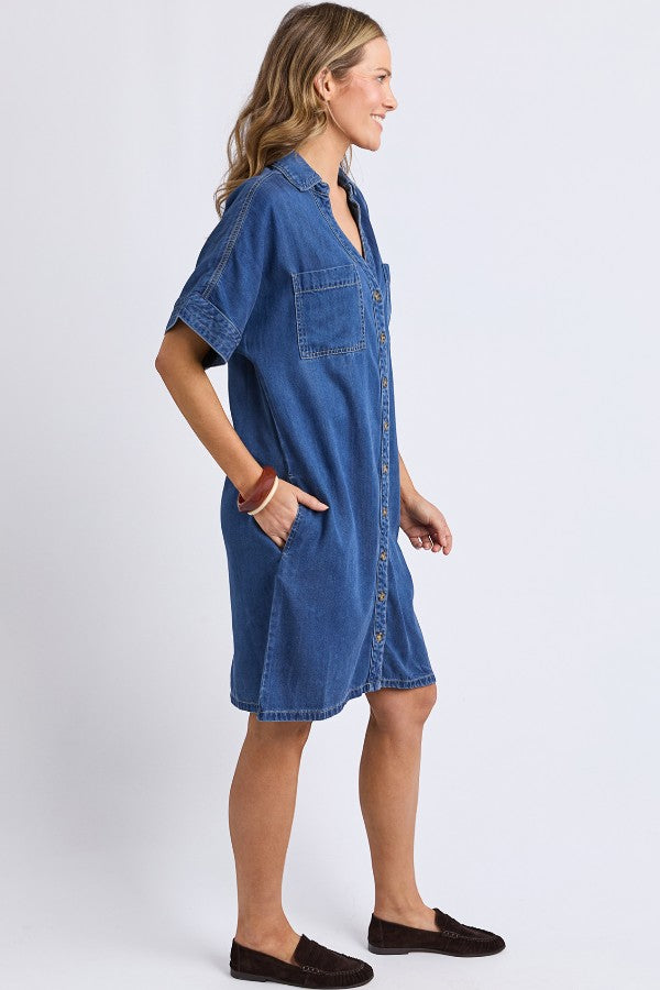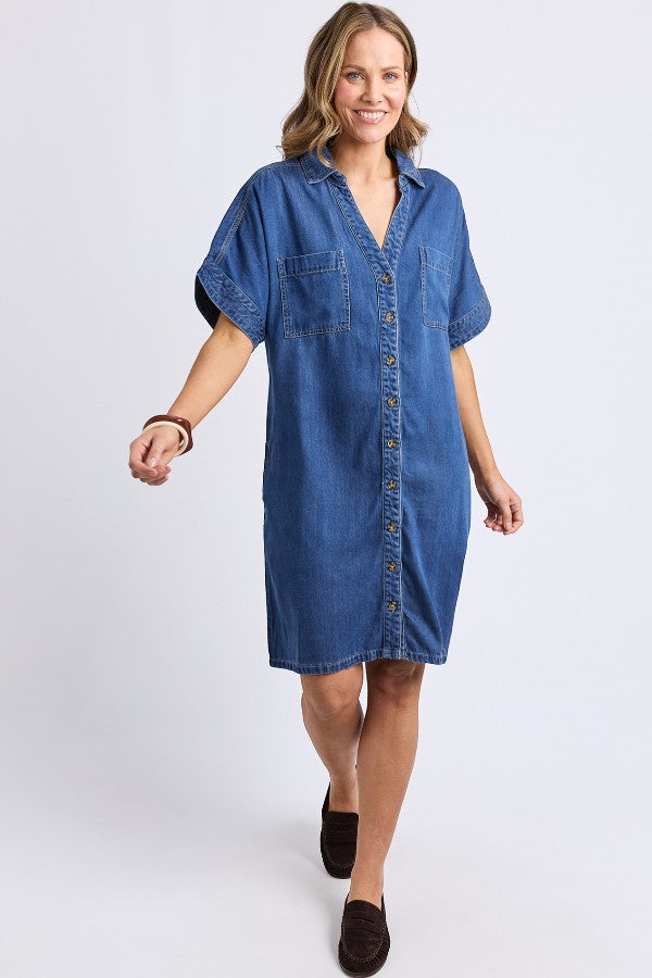 The Elm Demi Denim Dress is a relaxed shirt dress crafted from lightweight rigid denim. Designed with a button-through front and knee-length cut, it’s perfect for effortless everyday wear. Style with sneakers or sandals for an easy throw-on-and-go outfit.