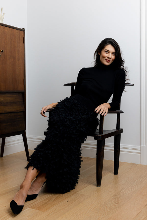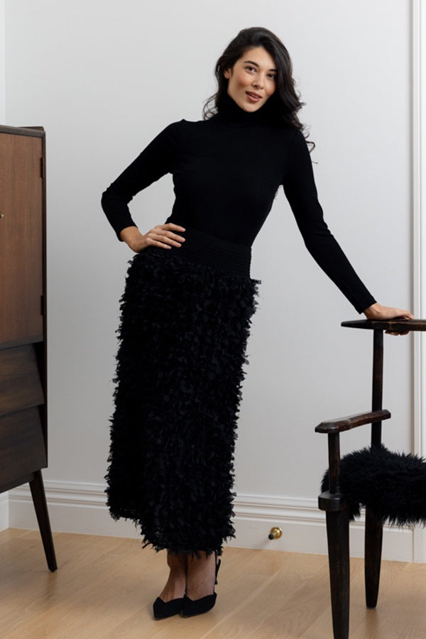 We all need that one piece in our wardrobes that is special or "wow"! Something we can trust to make us feel and look fabulous every time. The design is simple - a straight skirt with an easy elasticated waistband - but the fun is in the fabric, which is a gorgeous display of shirred ribbon. Amazing!